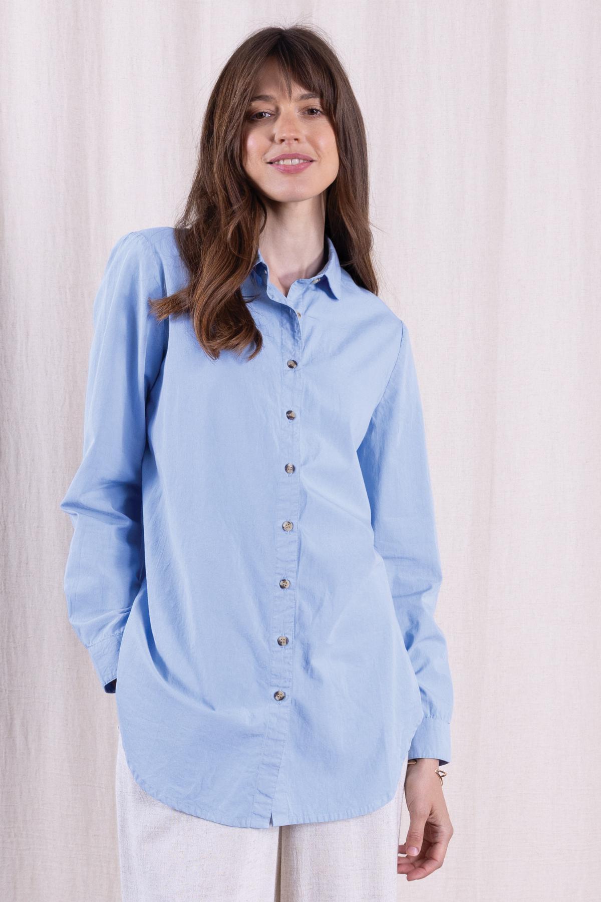 Das weite Hemd in gedämpftem Misty-Ton bietet lässigen Komfort. Es ist ideal zum Layering und für den Alltag draußen.