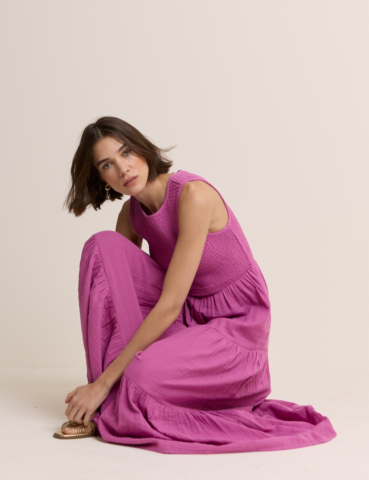 Das leichte Sommerkleid in kräftiger Farbe wirkt frisch und gepflegt. Es passt gut für den Alltag und entspannte Wochenendausflüge.