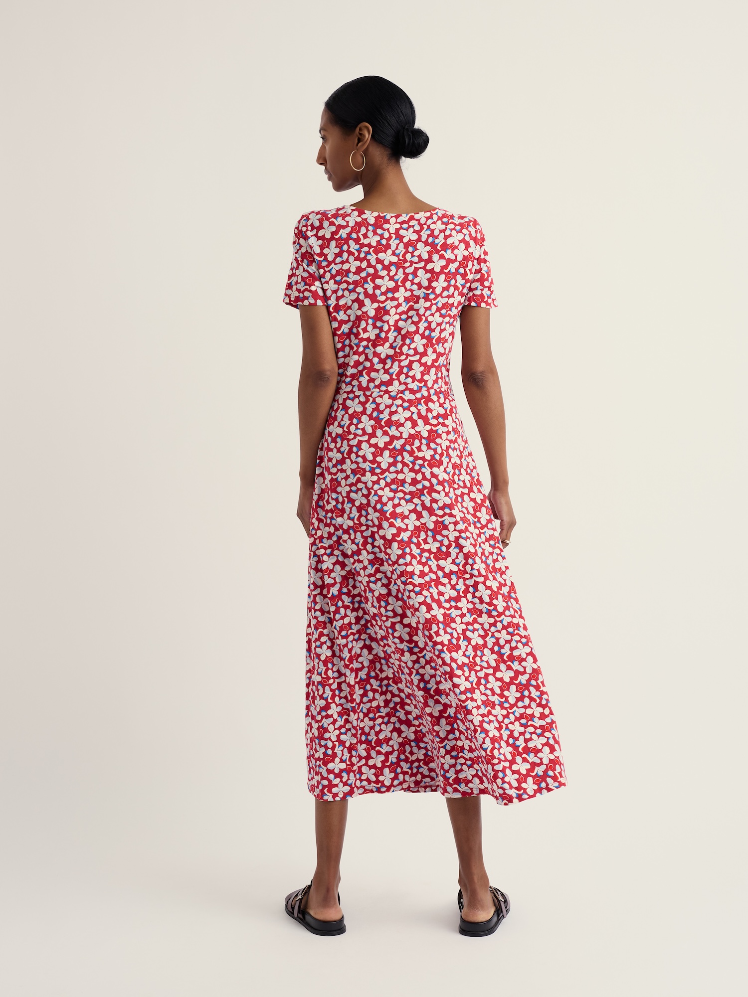 Figurbetontes Kleid mit intensivem Muster vereint feminines Design und Alltagstauglichkeit. Der Schnitt betont die Silhouette und wirkt zugleich gepflegt und unkompliziert.