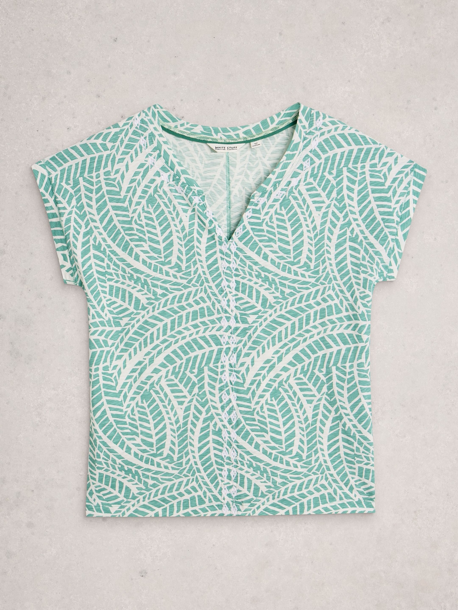 Ein luftiges Top mit dezentem Muster und bequemem Schnitt für den Alltag. Aus 100 % Fairtrade-Baumwolle, mit leichtem Stretch und V-Ausschnitt.